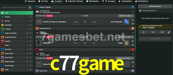A aposta c77game oferece aos jogadores a experiência mais conveniente de apostas em eSports!